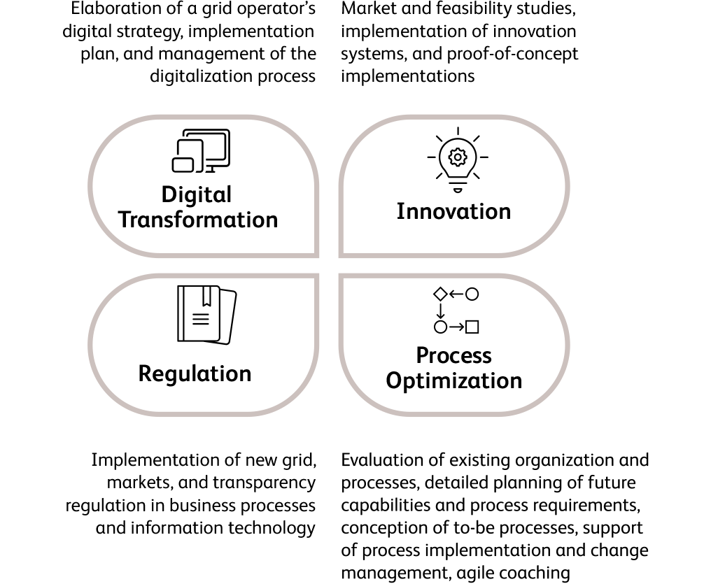 We support grid operators in all their core activities along the transformation path, such as: