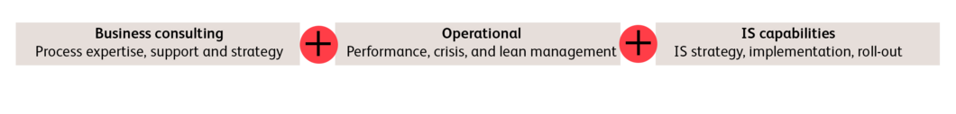 BearingPoint offers a structured and proven project approach and provides a broad range of consultant profiles, including business partner (product owner), project manager, performance & lean agent, change management lead, IS strategy advisor, advanced model builders, and business experts.