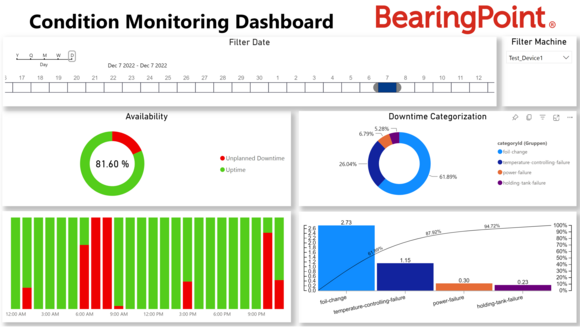 By detecting unplanned downtime, the package provides increased transparency. An interface enables easy categorization of downtimes, and a preconfigured dashboard offers equipment-specific visualizations.