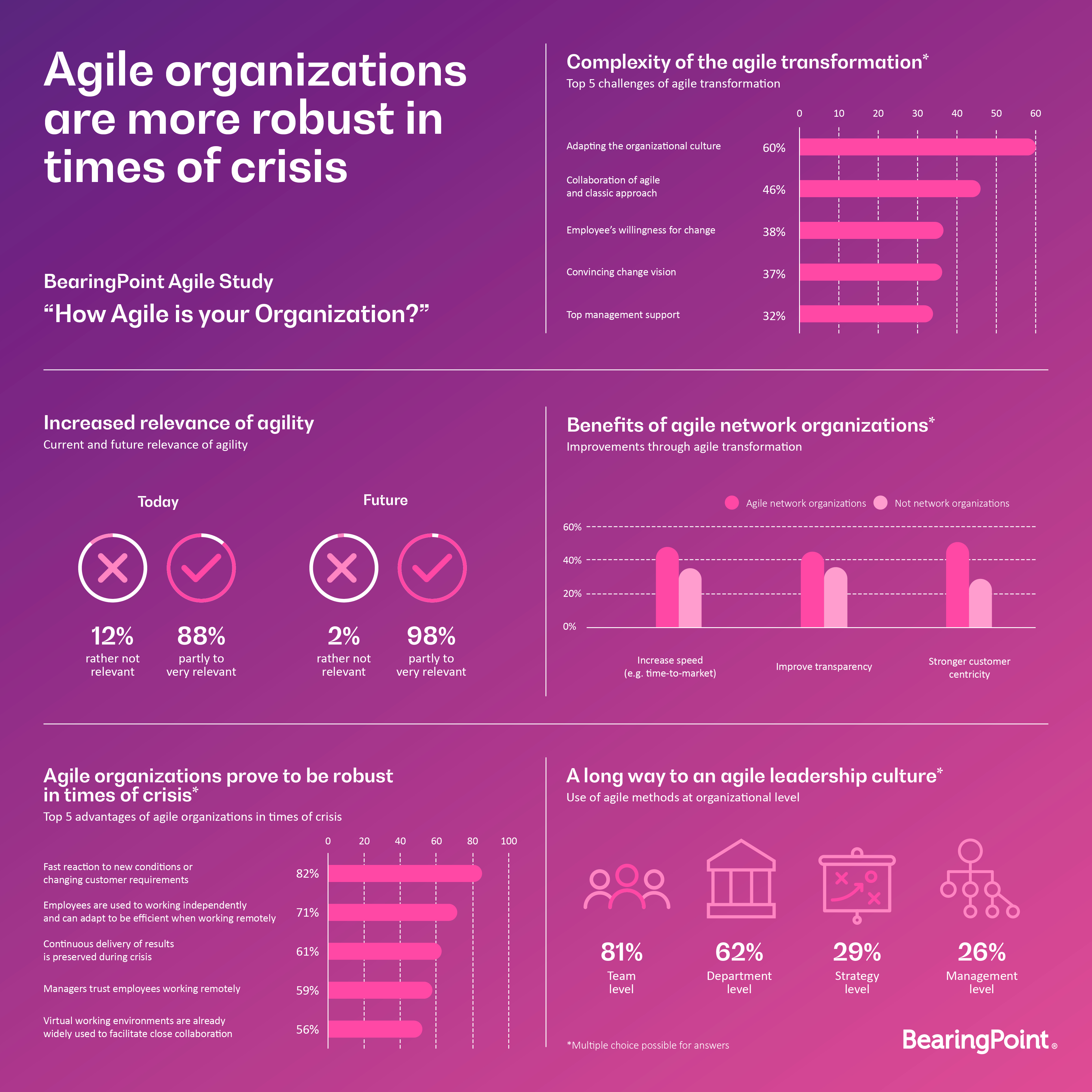 The pandemic also poses major challenges for all organizations. But those that already have agile working methods and mindsets will come through the crisis better. Our survey shows that they can react more flexibly to the rapid changes and are therefore more robust. Not only in times of crisis, but at any time.