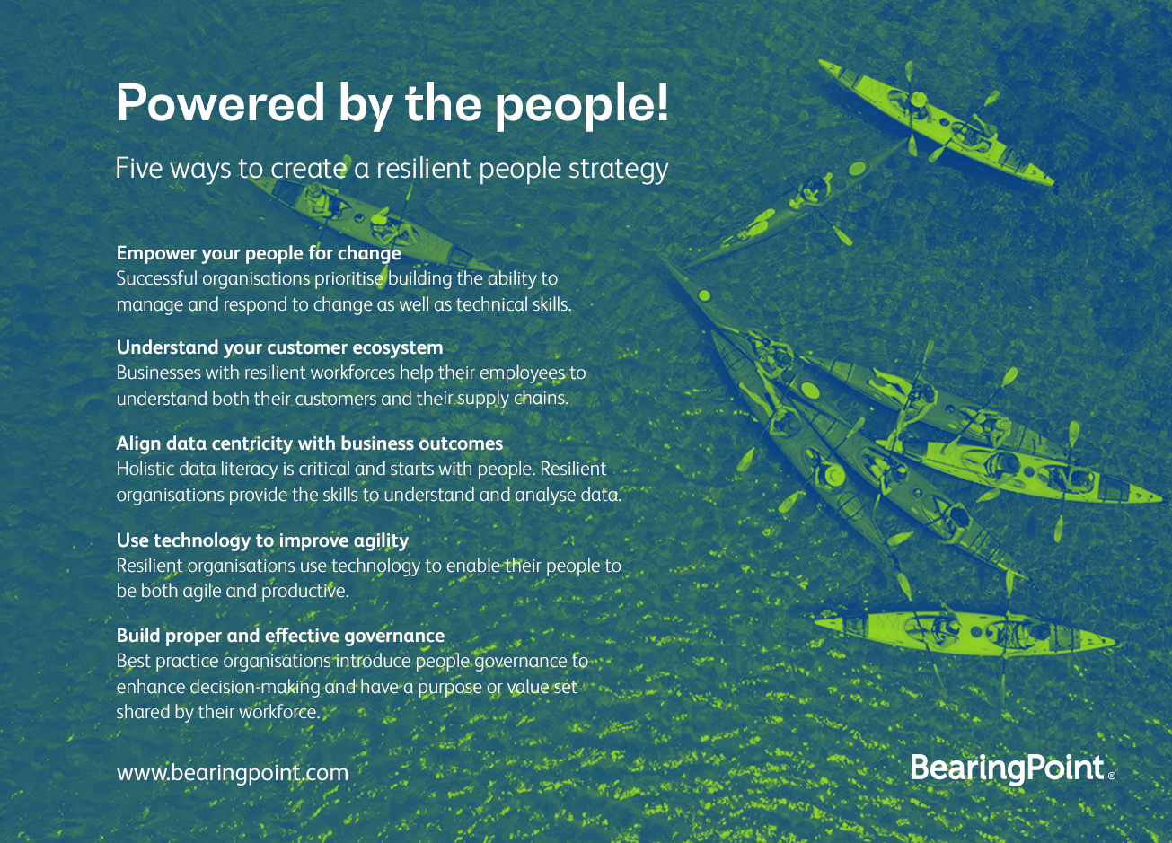 For BearingPoint, the essence of a resilient workforce is an organisation of people who are equipped to adapt to change. ‘Equipped’ is the key word here, because support needs to come from the top. The reward for fostering a resilient workforce is strong and measurable competitive advantage. The risk of not doing so is commercial failure.
