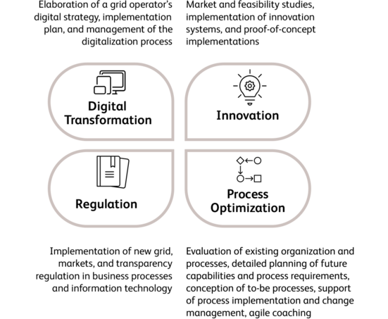 We support grid operators in all their core activities along the transformation path, such as: