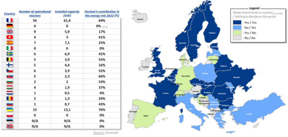 This visual representation underscores the prevailing consensus in Europe regarding the acceptance and acceleration of nuclear reinforcement, with minimal opposition. The dominance on the map vividly illustrates this trend, highlighting the strategic alignment of numerous nations towards a nuclear powered future.