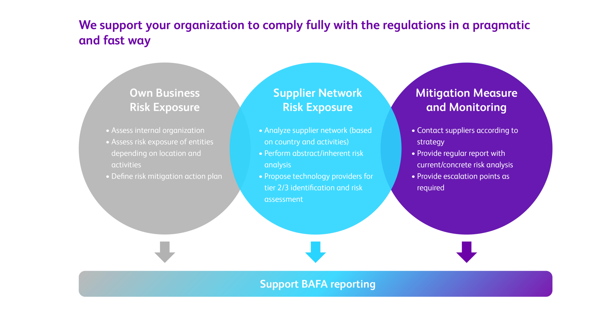 This is where we step in! Our functional expertise in the areas of supply chain, risk management and supply chain regulations, coupled with our technological know-how, will help you to overcome these challenges and successfully implement the necessary changes efficiently.