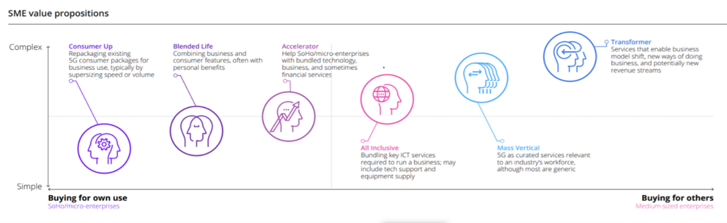 SMEs are aware of the benefits 5G can bring to their businesses and already view CSPs as their trusted 5G partners. It’s therefore critical that CSPs enable 5G to triage SMEs’ business context and industry solutions with outcome-based value propositions, to reap the rewards of this customer base. In some cases, global CSPs have launched programs that are capitalizing on the SME opportunity. Vodafone Spain offers an all-inclusive value proposition providing SMEs with compelling mobile-first productivity tools. SK Telecom is partnering with the Korea Smart Factory Data Association and software developer, BISTel, to offer a 5G-based big data analysis service to manufacturing SMEs. These types of collaborative approaches demonstrate how CSPs can marry 5G capabilities and other assets with ecosystem players to deliver profound value to SMEs.