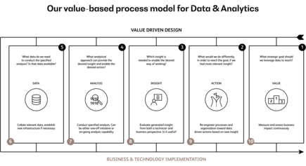 Our long-term project experience shows that the benefits must be clearly defined at the beginning of data-driven projects. We have developed a value-based process model based on our experience centered on approaching data-driven projects from the perspective of business benefits. A detailed data analysis should only occur after defining concrete questions or possibilities for decision support.